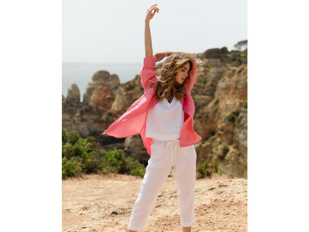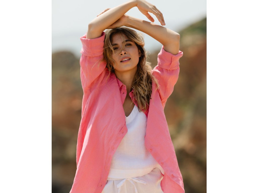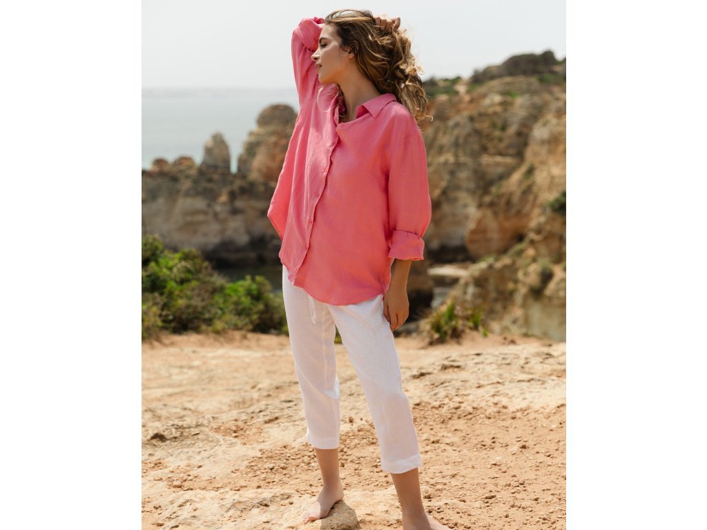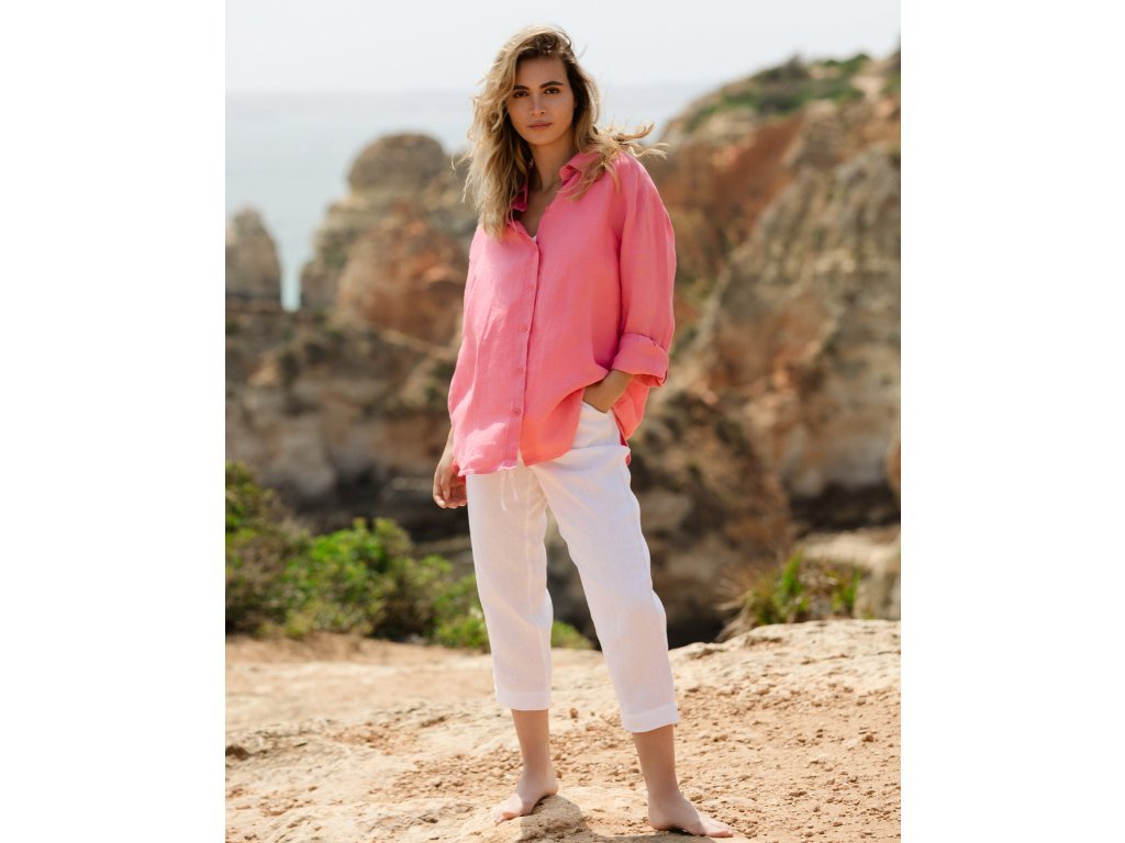 Lněná košile s dlouhým rukávem CORSICA v barvě flamingo