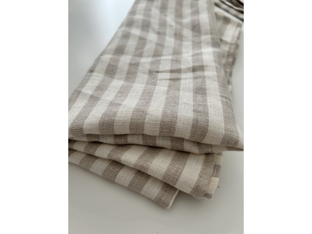Lněná utěrka v přírodním pruhovaném provedení