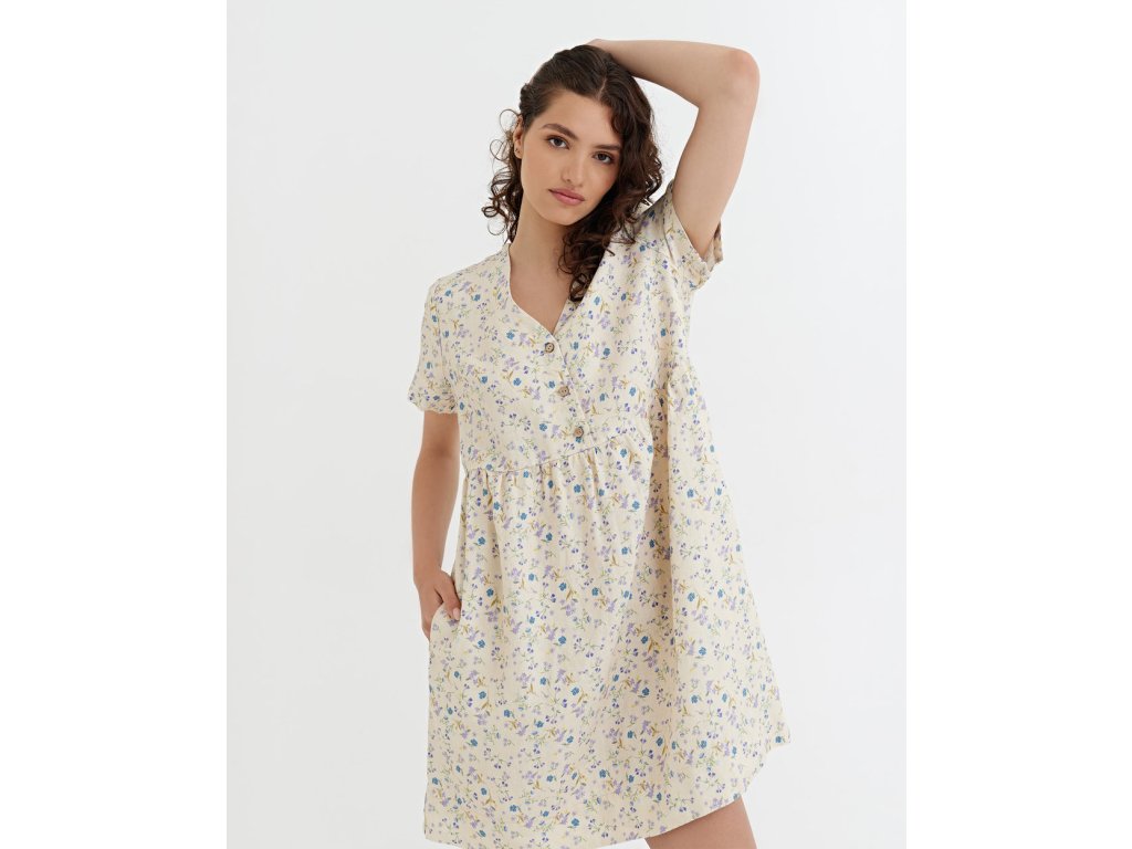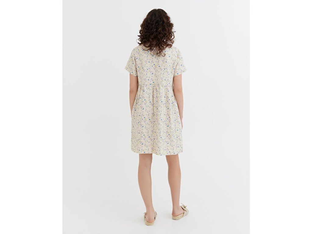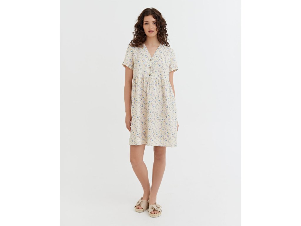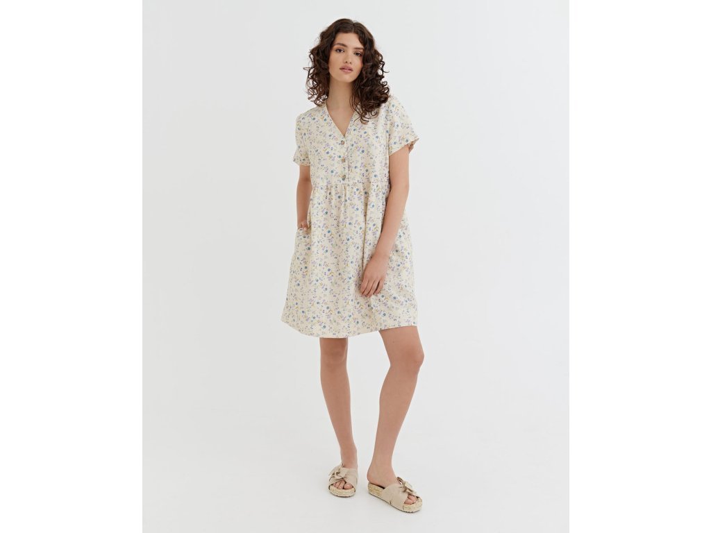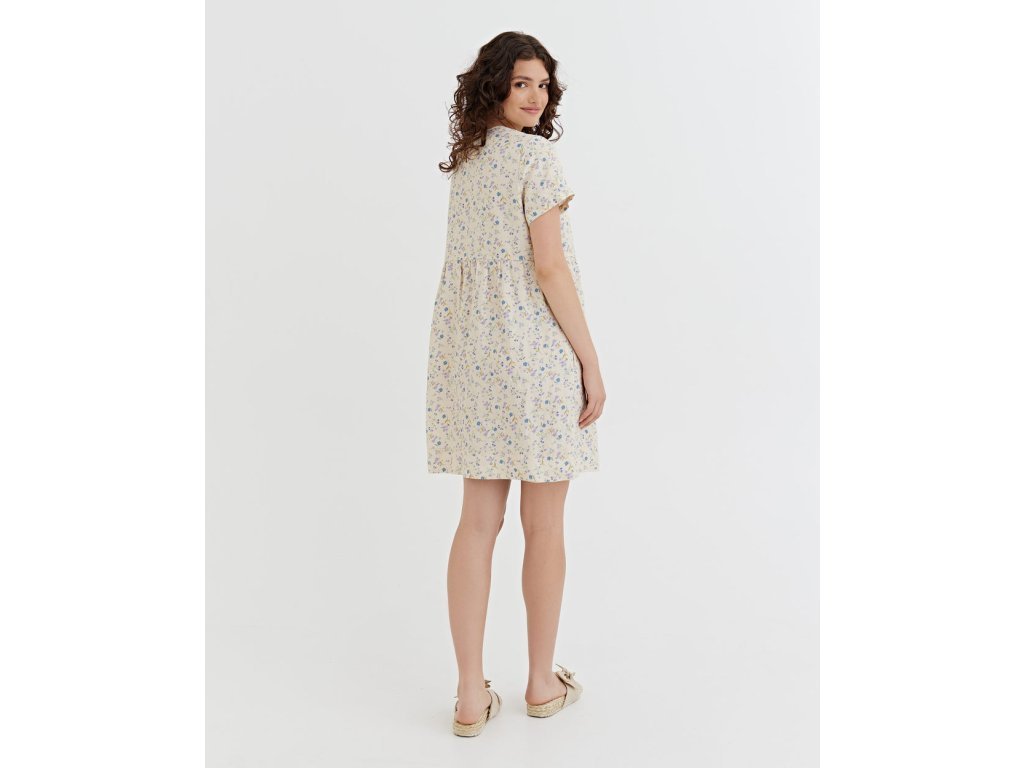 Midi lněné šaty MACEIO s drobnými květy