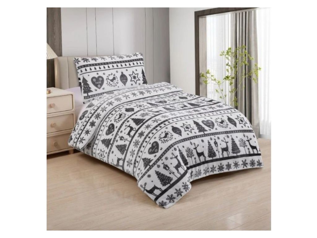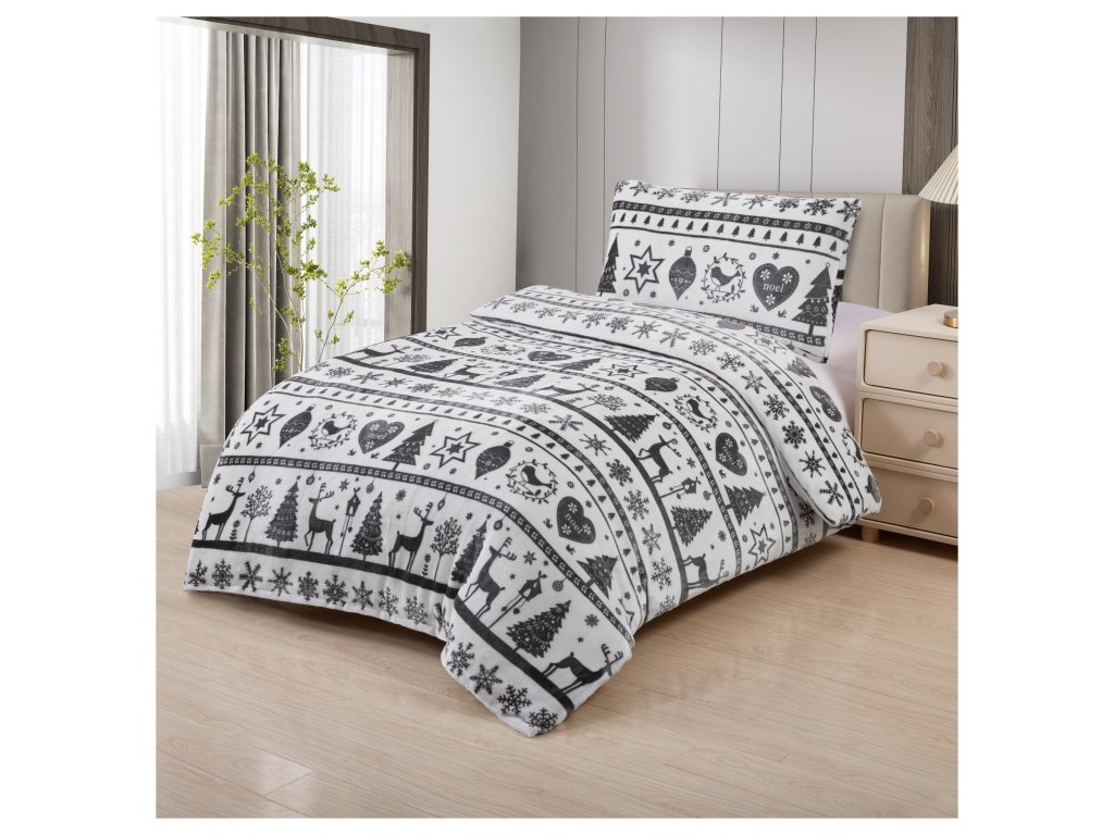 Povlečení mikroplyš-VÁNOCE ŠEDOBÍLÉ 140x200,70x90cm
